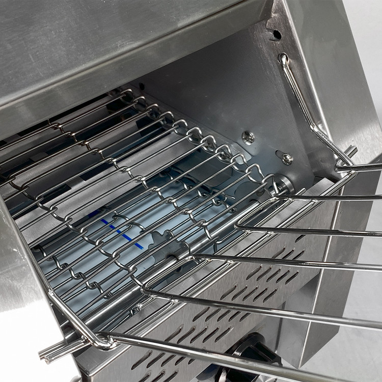 با استفاده از این دستگاه میتوان در کمترین زمان ممکن و به بهترین شکل، تکههای نان کوچک شده را درون ریل دستگاه قرار داد و برشته کرد.