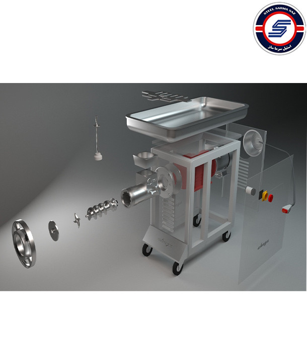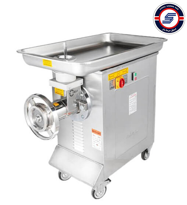 وزن چرخ گوشت چگا صنعتی 295 کیلوگرم و سنگین است، اما چرخهای آن جابهجایی چرخ گوشت را آسان میکند.