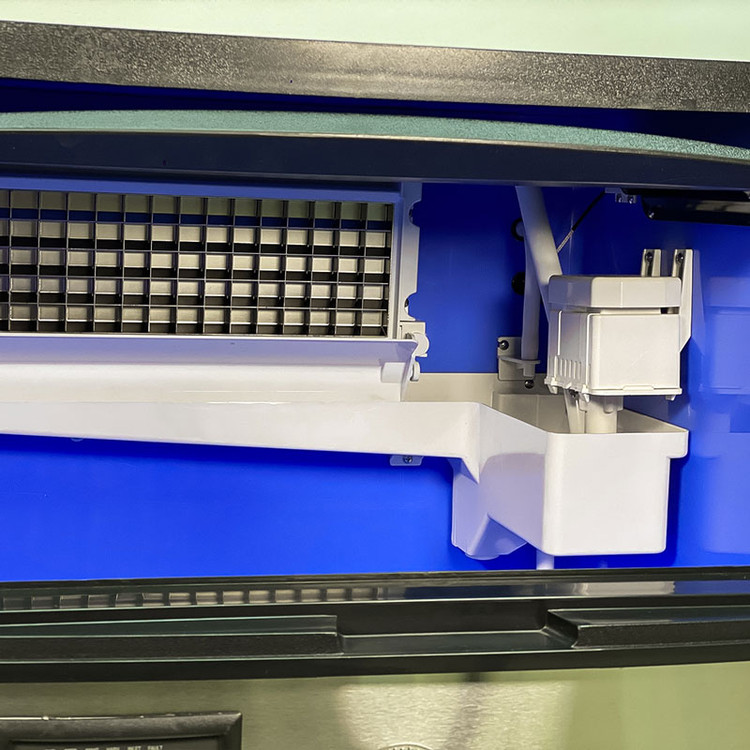 - همچنین پشت یخساز صنعتی دارای فیلتر قابل تمیز کردن می باشد که به راحتی می توانید این فیلتر را پس از استفاده طولانی مدت درآورید و تمیز کنید و مجددا روی دستگاه یخساز قرار دهید.
