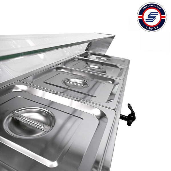 - ظرفیت مخزن این هات بنماری 3 لگن می باشد، این سه لگن باید از بن ماری هایی به سایز 1.2 عمق 15 باشد.