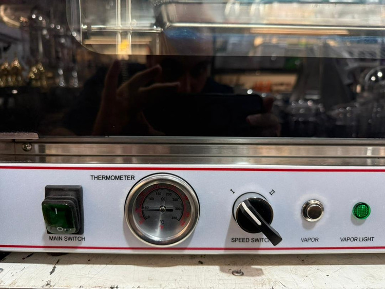 - دستگاه فر کانوکشن دارای یک ترموستات حرفه ای دما از 50 تا 300 درجه سانتی گراد و یک عدد تایمر برای پخت هر نوع شیرینی کیک، نان بسته به مواد داخلی 10 تا 120 دقیقه قابل تنظیم است.