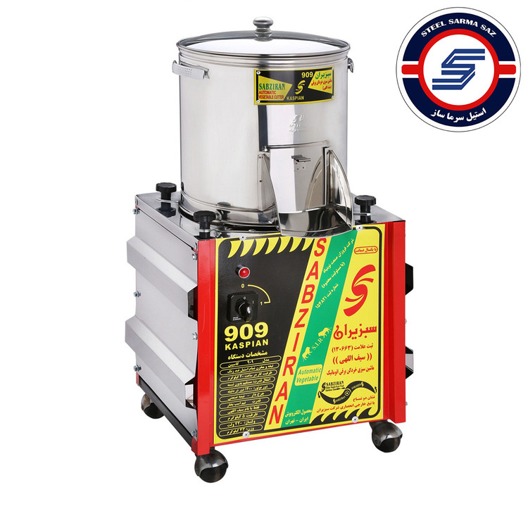 سبزی خرد کن 5 کیلویی سبزیران مدل 909 کاسپین یک سبزی خرد کن نیمه صنعتی سطلی است. با ارتفاع 80 سانتیمتر و وزن 30 کیلوگرم، یکی از تولیدات خوب و کارآمد داخلی به شمار می آید. برای اینکه تبدیل به سبزی خرد کنی ایده آل برای بازار ایران شود، از مواد و قطعات مرغوبی استفاده کرده است. در عین حال از قیمت بسیار مناسبی هم برخوردار است که با استطاعت متقاضیان و خریداران ایرانی جور در می آید. این سبزی خرد کن نیمه صنعتی تماما از استیل نگیر یا غیرمغناطیسی تهیه شده است. طراحی دستگاه ساده و در عین حال مفید است. مخزن 5 کیلویی دستگاه در بالاترین قسمت آن قرار گرفته است و دارای دهانه ای 30 سانتیمتری است. موتور نیز در قسمت پایینی سبزی خرد کن سبزیران جا داده شده است که ساخت شرکت موتوژن تبریز است و از بهترین موتورها برای دستگاه های تجهیزات آشپزخانه صنعتی به شمار می رود. تیغه این سبزی خرد کن نیمه صنعتی از استیل ضدزنگ است و از معدود قطعات خارجی این دستگاه شمرده می شود. با قدرت 1.2 اسب بخاری موتور، سبزی خرد کن سبزیران مدل 909 کاسپین می تواند در هر ساعت 50 کیلوگرم سبزی را خرد کند. ولتاژ مصرفی این دستگاه از برق 110 یا 220 تامین می شود. یک تیغه تیز کن دستی، دو کفگیر برای خالی کردن محتویات مخزن همراه دستگاه خواهد بود. این سبزی خرد کن ایرانی با یک سال ضمانت از طرف شرکت سبزیران عرضه شده است.