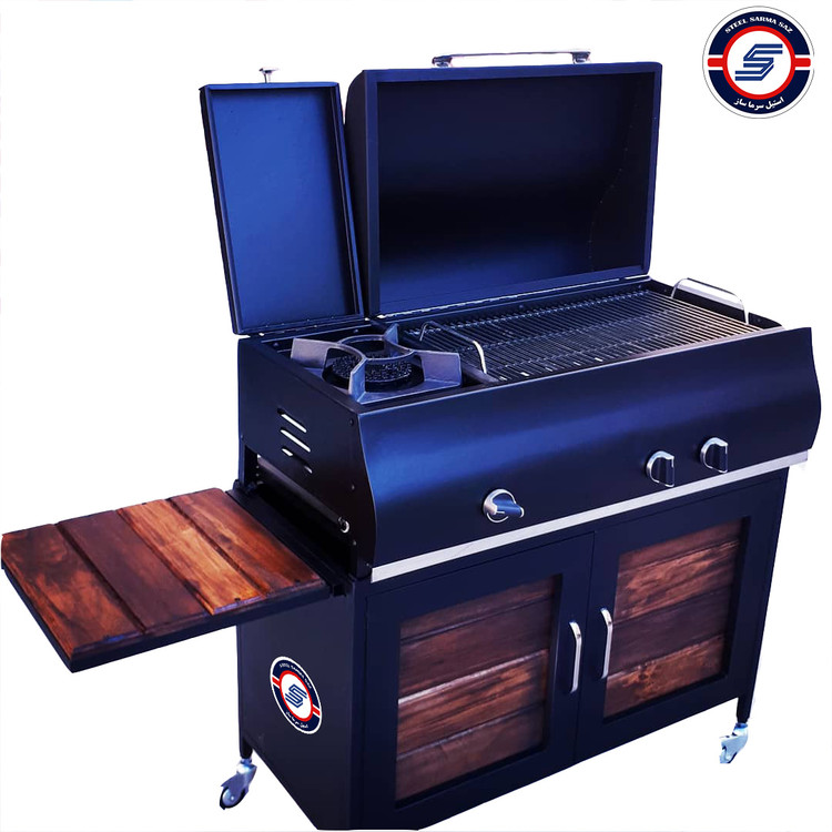 این باربیکیو قابلیت تنظیم شعله را دارد که امکان پخت و گریل انواع گوشت و سبزیجات را فراهم می کند. در قسمت باربیکیو روی هر مشعل یک عدد ناودانی چدنی تعبیه شده که با شعله غیر مستقیم باعث پخت مطلوب تر کباب و جلوگیری از سوختن گوشت ها می شود. همچنین وجود سینی چکه گیر متحرک باعث می شود تا مایعات و چربی خارج شده از انواع گوشت و سبزیجات به زیر باربیکیو نشت نکند و شستشو و تمیز کردن دستگاه بعد از استفاده آسان باشد. این باربیکیو دارای پایه و یک طبقه زیرین برای نگهداری کباب های آماده و تجهیزات مورد نیاز مانند زغال، انبر و کف گیر مناسب است. جنس بدنهی باربیکیو صنعت کاران ضد زنگ بوده و در برابر رطوبت مقاوم میباشد. همچنین وجود درپوش هم به زیبایی و آراستگی محیط در زمانی که از باربیکیو استفاده نمی کنید کمک می کند. این باربیکیو دارای میز چوبی تاشو و طبقه مجزا جهت گریل نیز هست. نکته جذاب این باربیکیو این است که بدنه و پایه این دستگاه به صورت جداگانه طراحی شده و به همین دلیل میتوانید آن را به سادگی در خودروی شخصی قرار بدهید و به راحتی در باغ ویلا، بالکن و یا حیاط استفاده نمایید.